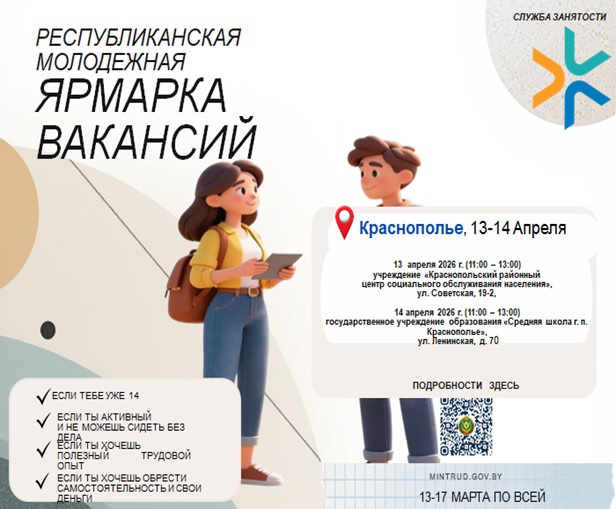 Перечень организаций, готовых принимать на работу молодежь в свободное от учебы время по Краснопольскому району размещен на баннере занятости сайта Краснопольского райисполкома