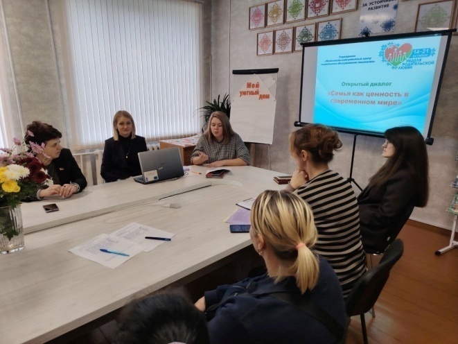 В рамках проведения мероприятий посвященных Неделе родительской любви состоялся открытый диалог «Семья как ценность в современном мире» для многодетных семей. На мероприятии участники обсудили вопросы поддержки и укрепления семейных ценностей, традиционного понимания института семьи, ответственного материнства и отцовства, воспитания детей. Своим взглядом на вопрос важности семьи, поделились гости мероприятия: начальник отдела ЗАГС, заместитель председателя КДН. Специалисты Краснопольской районной центральной библиотеки им. Ткачева подготовили выступление и книжную выставку. В ходе встречи был продемонстрирован социальный видеоролик «Семья – это…», а также участники с увлечением включились в реализацию творческого проекта «Мой уютный дом». В ходе мероприятия психолог познакомил участников с 10-ю советами по воспитанию детей. Данная встреча способствовала формированию культуры личности и традиционных семейных ценностей.