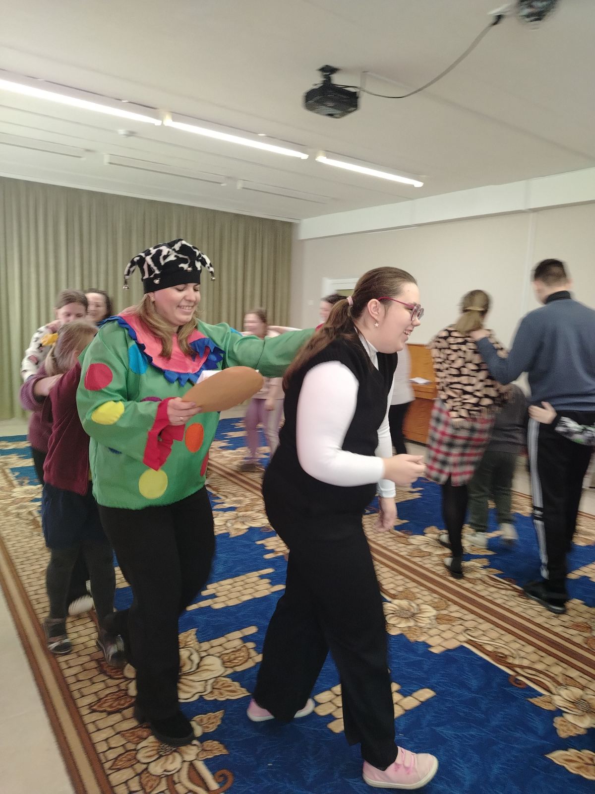 Главными героями праздника стали веселые Скоморохи. Своими шутками, прибаутками они с первых минут вовлекли детей в атмосферу старинного праздника. В компании озорных ведущих ребята участвовали в народных играх, водили хороводы и состязались в ловкости. Скоморохи не давали скучать никому: каждое задание превращалось в маленькое представление, вызывая искренний смех и радость у детей.