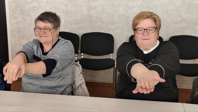 Участники мероприятия с удовольствием выполняли упражнения, которые развивают мелкую моторику, разрабатывают суставы, улучшают координацию движений, частично позволяют восстановить память, внимание.