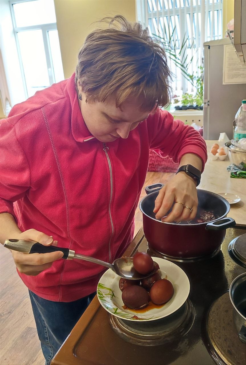 В преддверии светлого праздника Пасха в отделении социальной реабилитации, абилитации инвалидов Краснопольского районного центра социального обслуживания населения прошёл мастер-класс по покраске яиц и изготовления декоративной подставки для пасхальных яиц.