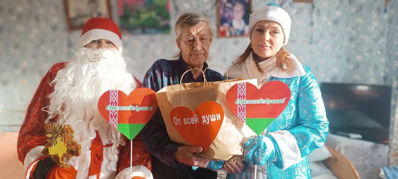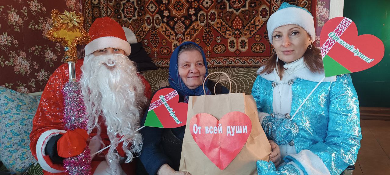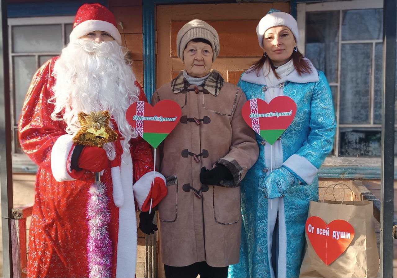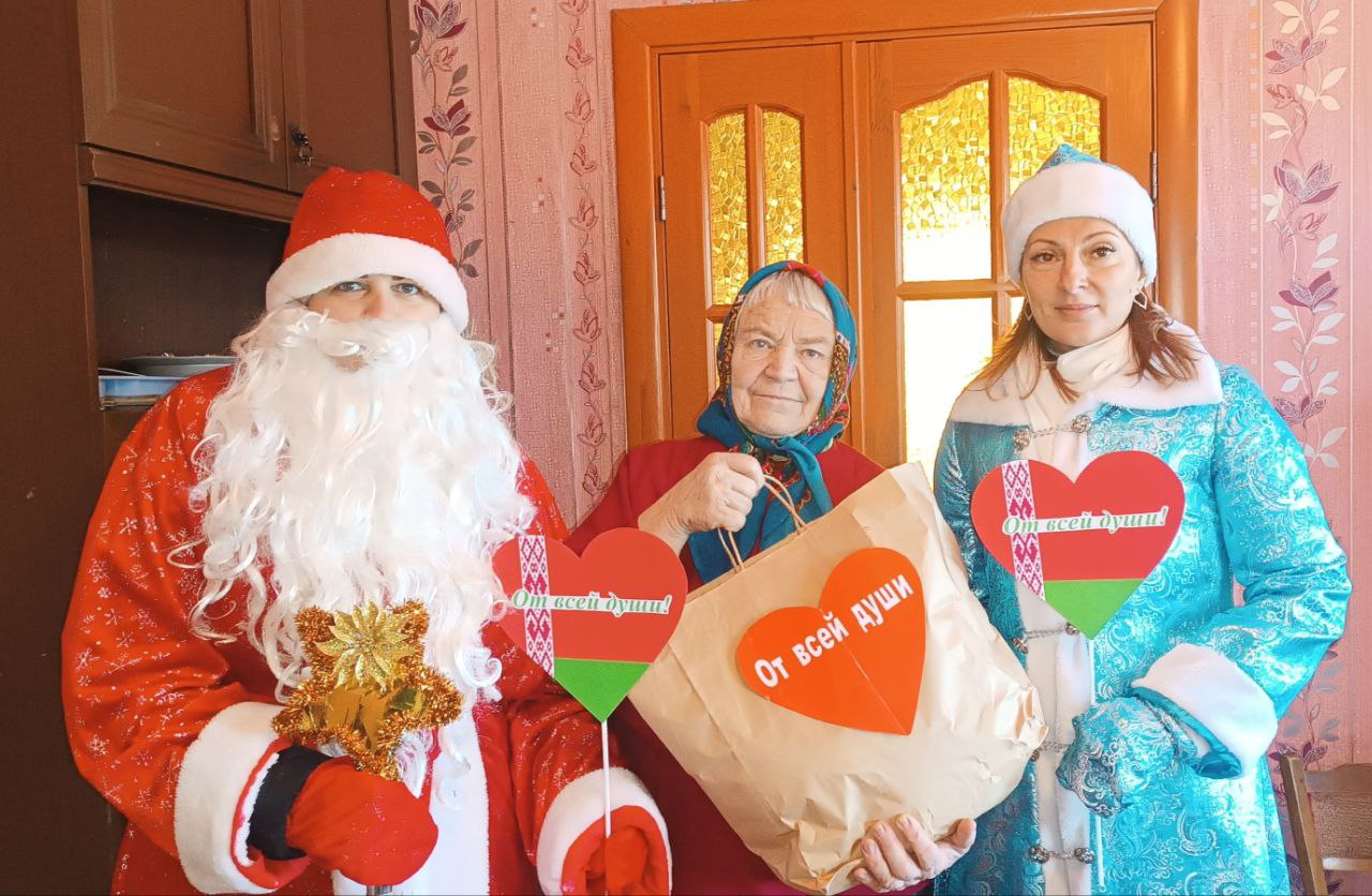 В канун Нового года специалисты учреждения «Краснопольский районный центр социального обслуживания населения», волонтеры «серебряного» возраста, члены ОО «БРПО» УО «Краснопольская районная государственная гимназия» навестили одиноко проживающих ветеранов труда, посещающих отделение дневного пребывания для граждан пожилого возраста центра.